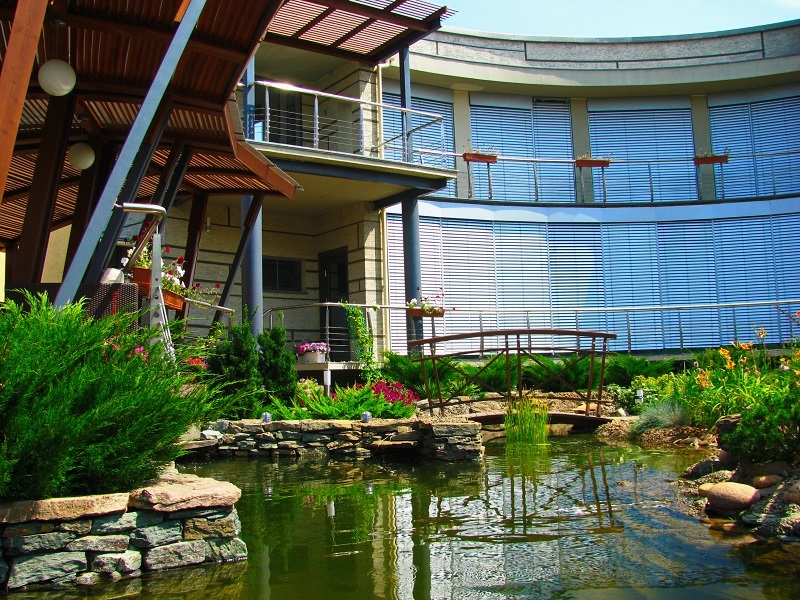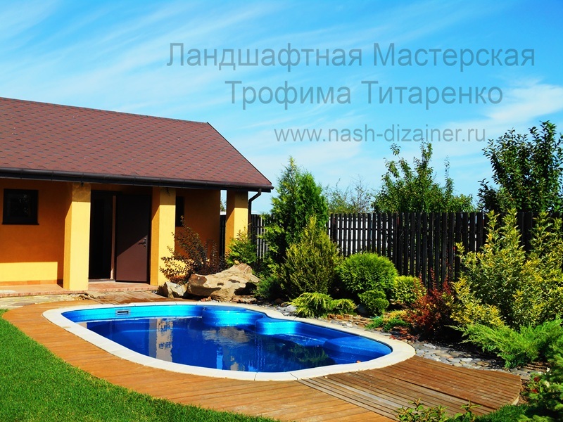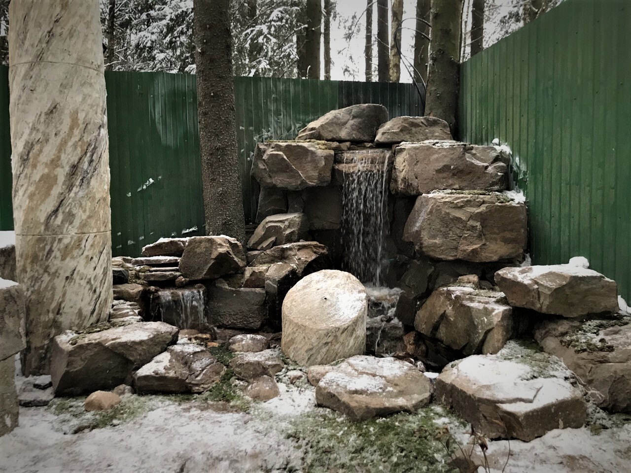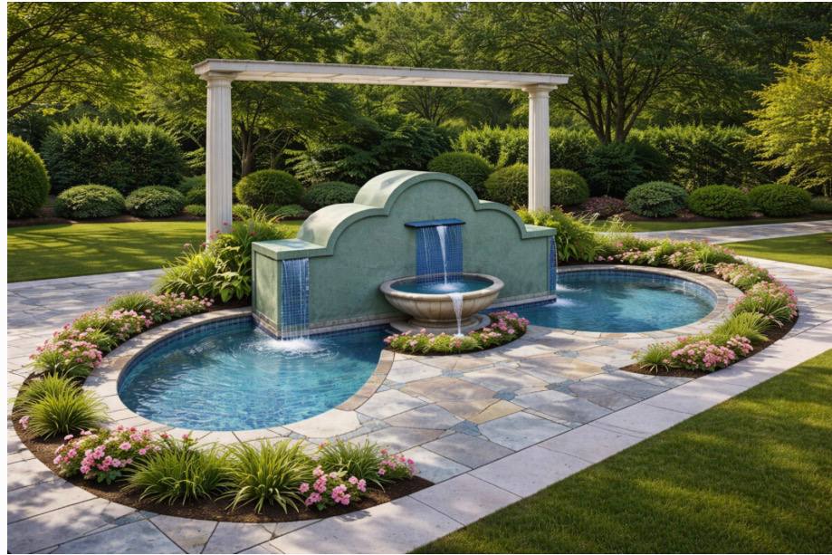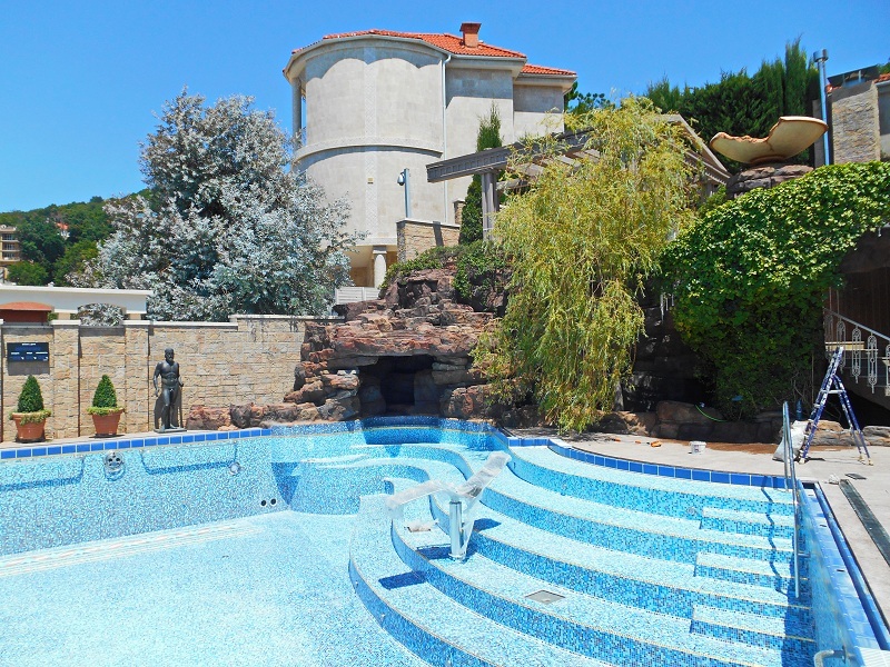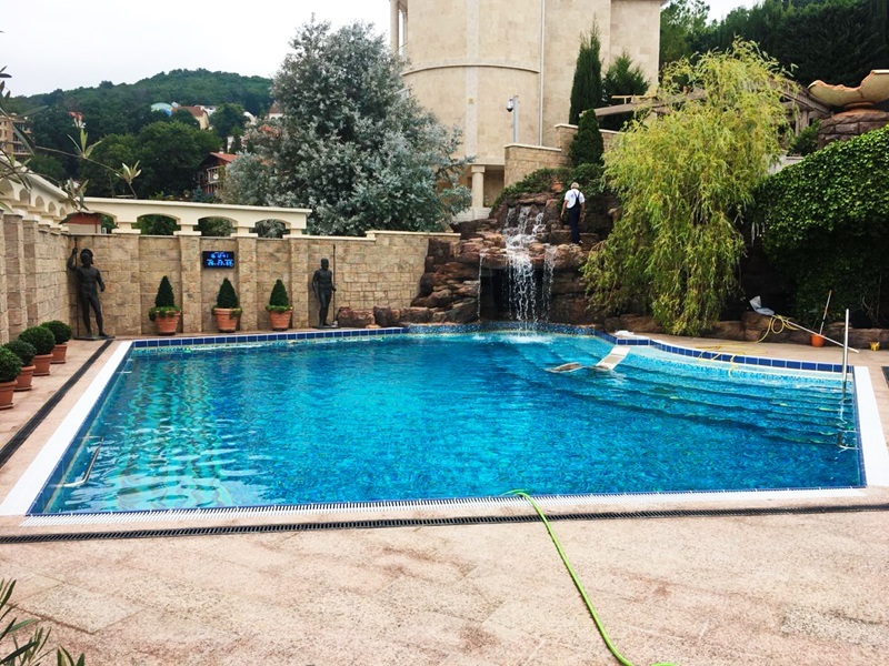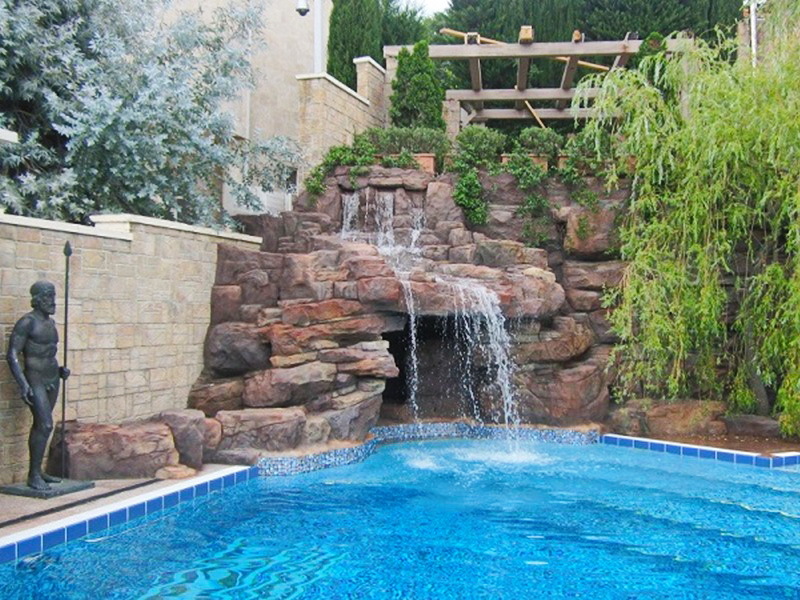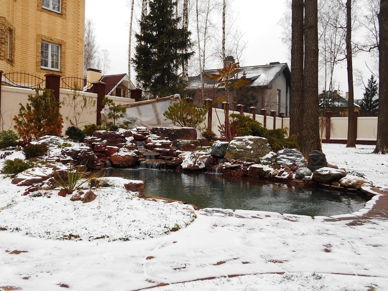 Всесезонный плавательный пруд с всесезонными водопадами