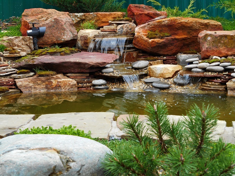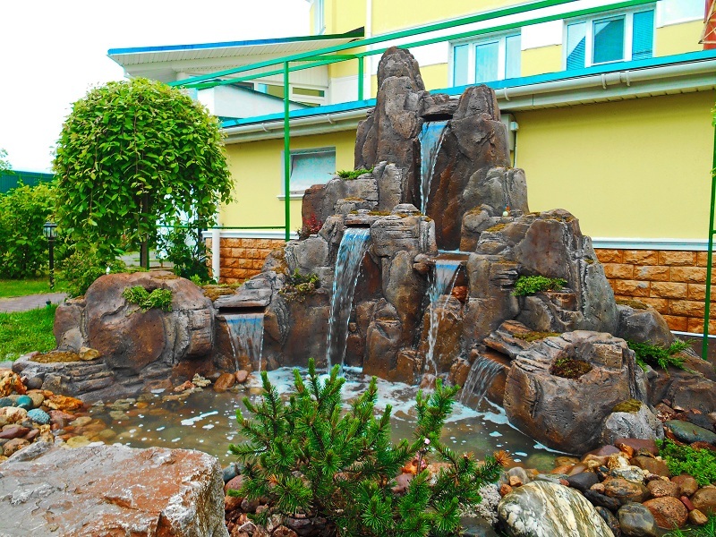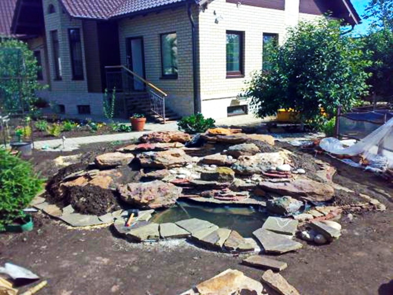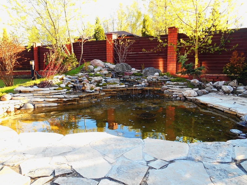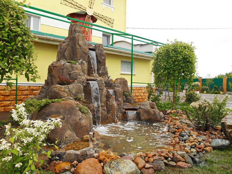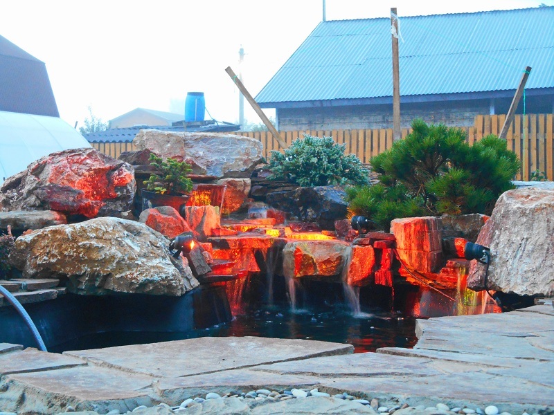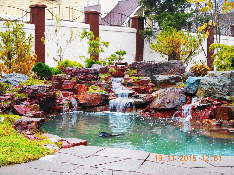 Искусственные водопады в пейзажном стиле лучше всего создавать в режиме «Свободного полёта фантазии!!! Уникальные по своей красоте и эстетичные водопады получаются с применением природного камня взятого с верхних слоёв и уже пролежавших долгое время на поверхности. И для этого может подойти практически любая порода камня. Такие камни, конечно, можно приобрести на рынках, но удобнее и выгоднее выбирать камни в карьере. Заказчик может самостоятельно выбрать камень для строительства водопада, либо обратиться к нам за помощью. Мы оказываем помощь в закупке всех необходимых материалов, а так же, выезжаем в карьеры. В любом случае, с учётом внешнего вида найденного камня, в процессе сборки водопада, визуальная картина корректируется и достигается максимальный природный эффект.