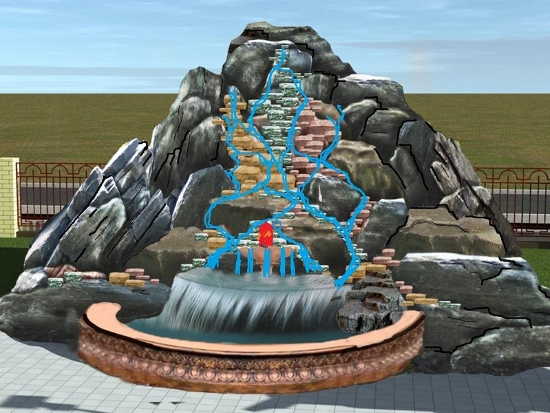 Далее, после согласования бюджета, в качестве первого предложения, Заказчику предоставляется подборка эскизов новых идей, либо фото водопадов из каталога, по которым можно определить основные параметры и характеристики водопада. При необходимости готовится эскиз в фотошопе. Далее, после определения всех необходимых цифр производится сметный расчёт. И уже после, утверждения конечной стоимости, подготавливаются все необходимые документы и заключается Договор.